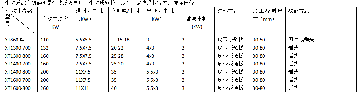 主要用途:生物質發電廠專用設備,用于建筑廢舊模板,樹枝木材,各種農作物秸稈的破碎。