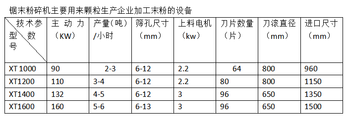 鋸末粉碎機主要用途為生物質顆粒制棒、機制木炭等木料細末加工專用設備,與沙克龍布袋除塵系統連接使用,粉末顆粒大小可有篩孔大小控制,型號為XT1000ZL、XT1200ZL、XT1400ZL、XT1600ZL和XT1000PL、XT1200PL、XT1400PL、XT1600PL,產量每小時1--6噸。